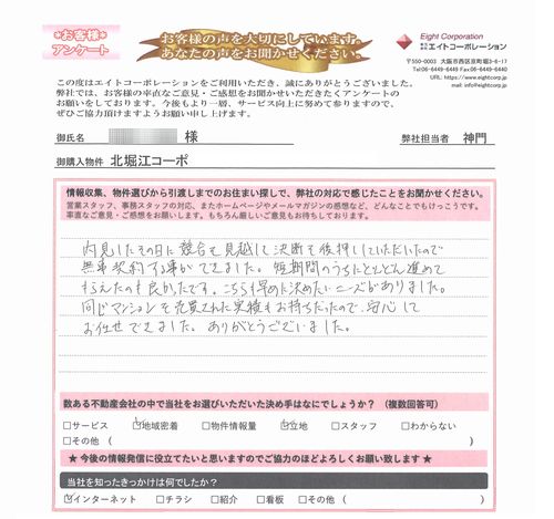 245I・M 様 阿波座ドリームマンション 担当:比嘉